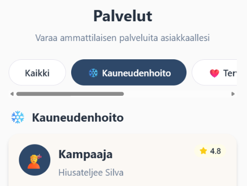 Omainen voi tilata ulkopuolisia palveluita (esim. kampaaja, jalkahoitaja) suoraan sovelluksesta.